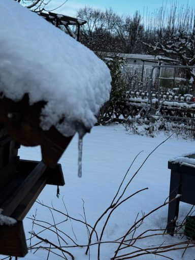Bitte im Garten Vorsicht beim Öffnen des Haupthahns, es war ein harter Winter, ggf. gibt es Frostschäden an den Wasserleitungen.